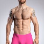These MANstore M2003 Micro Pants are marvellous male boxer brief trunks in a metallic leopard spot fabric with a smooth satin sheen. A men’s underwear maxi short that oozes sex appeal.